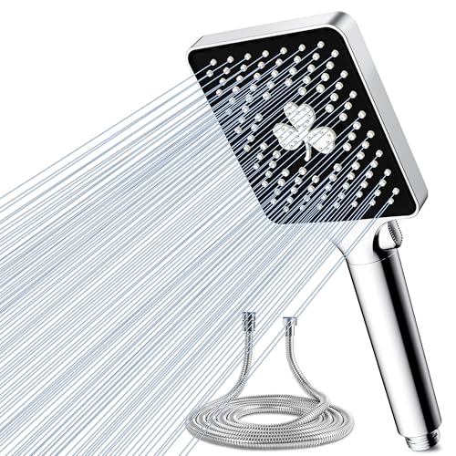 HOAENTSA Shower Head and 2M Hose High-Pressure with 7+1 Modes Large Universal Hand-Held Square Shower Powerful Shower Head for Low Water Pressure