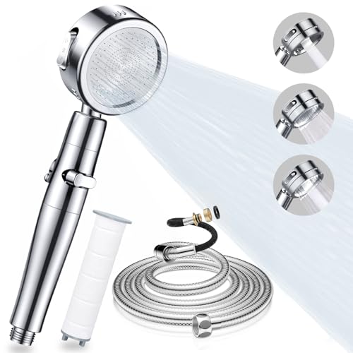 TOPAHGOD High Pressure Shower Heads, Hard Water Filter Shower Head with 2M Shower Hose, 3 Mode Shower Head with Pause Switch, Massage Showerhead with Water Filter Bathroom Accessory, Silver