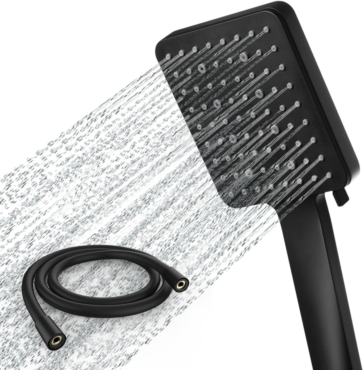 LYFHJD High Pressure Square Handheld Shower Head Set with Adjustable Supply Elbow Wall Connector Holder Shower Hose Hand Held Shower Spray Head Combo for Shower System Matte Bla