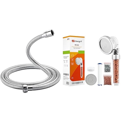 GRIFEMA COMPLENTO-G851 1/2 Inch 1.5m Shower Hose and M22025 Shower Head with Beads Filter, 3 Modes Shower Head Filter