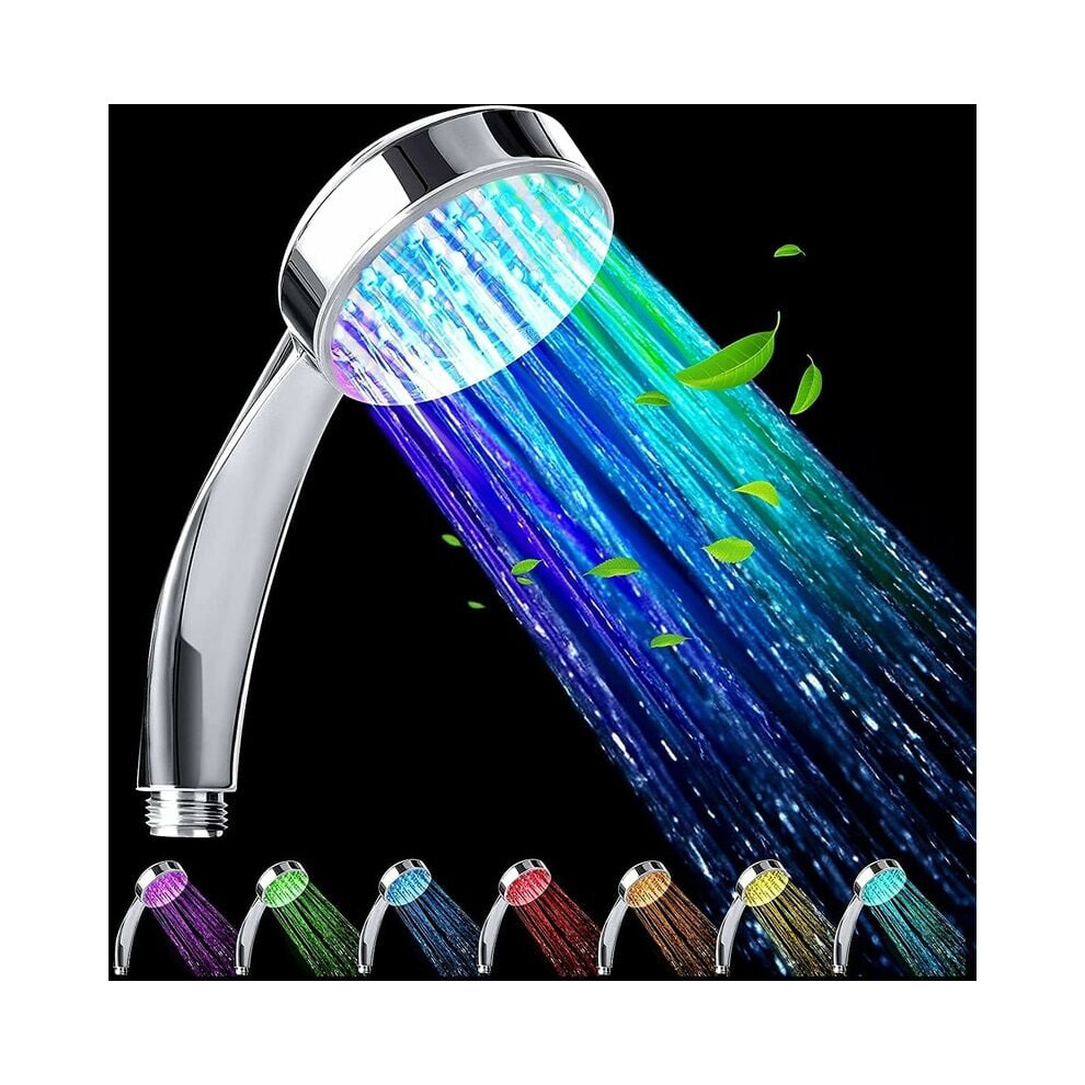 LED Shower Head, Rainfall Shower Head, Color Changing Shower Head, No Power, Universal 7 Spray Types Chrome Shower Head for Most Shower Hoses