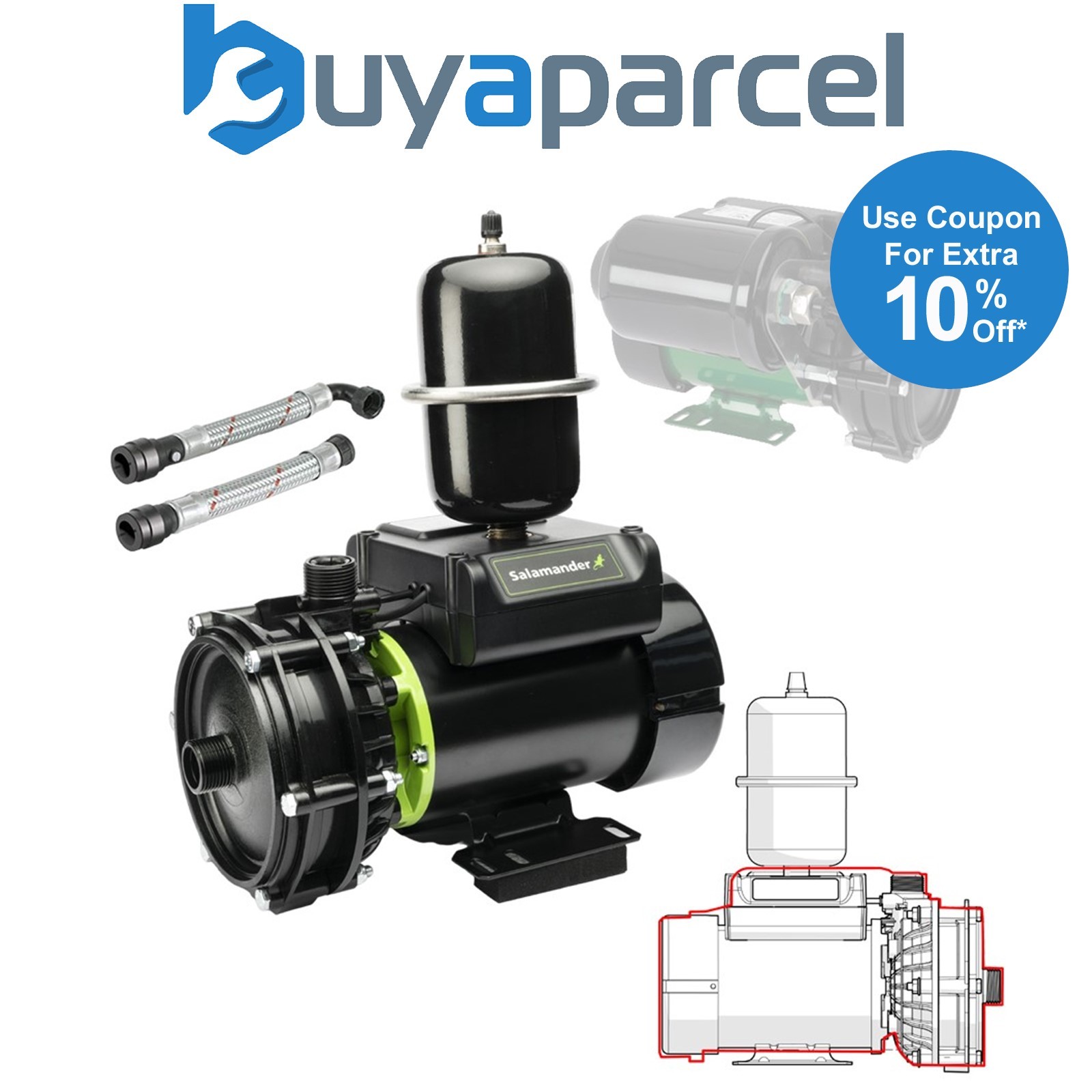 Salamander CT55+ XTRA 1.5 Bar Positive Single Shower Pump +Iso Hoses CT55PLUS