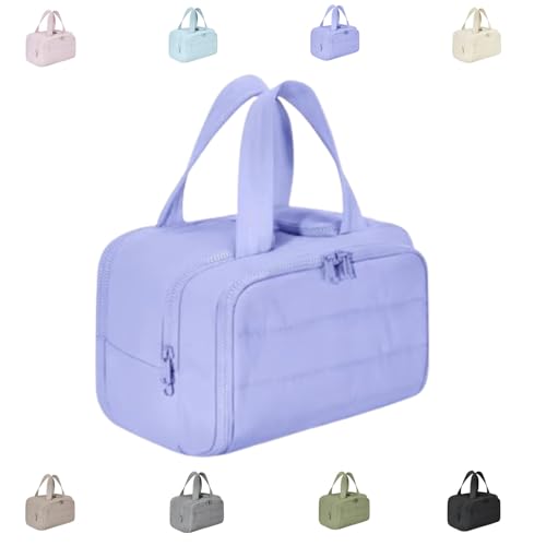 Travel Cosmetic Bag, Large Capacity Wide-Open Travel Cosmetic Bag,0.6lb Lightweight Toiletry Bag with Handle for Traveling, Shower & Toiletries (Light Purple)