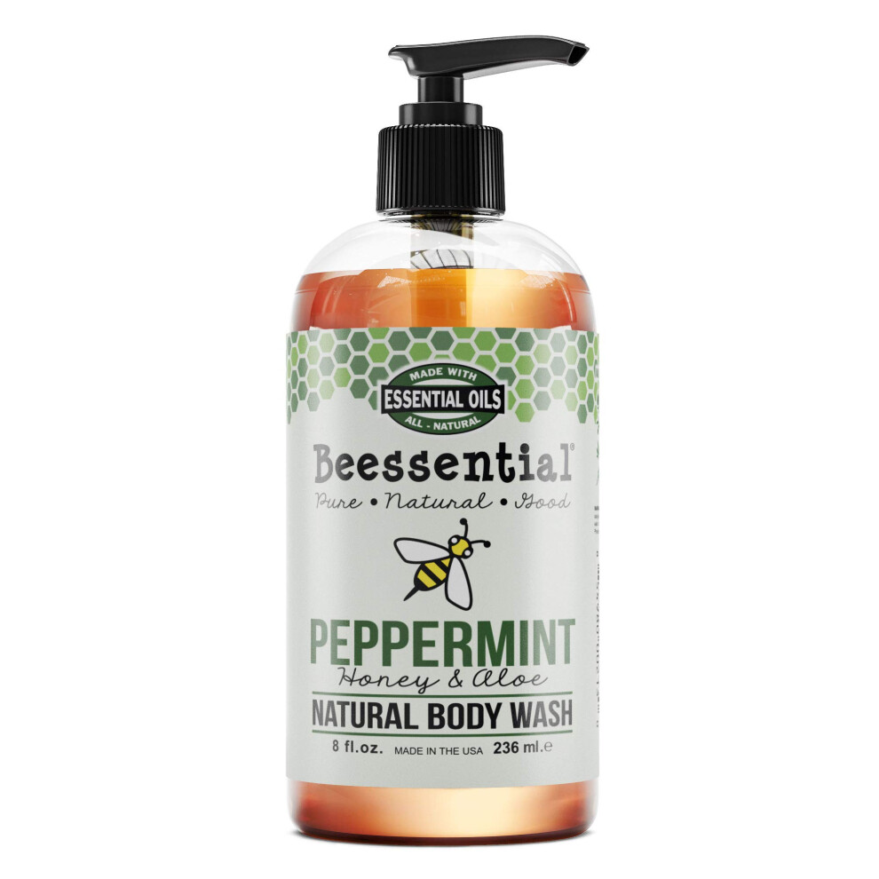 Beessential Natural Body Wash Peppermint | Sulfate-Free Bath and Shower Gel with Essential Oils for Men & Women 8 oz