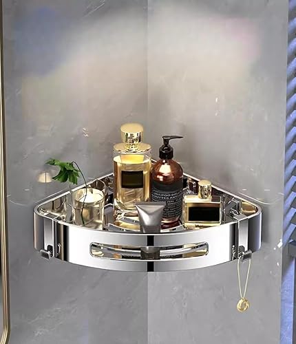 IGNPION Bathroom Organiser Shelf Corner Storage Shelf Stainless Steel Bathroom Accessory Caddy Shelves Wall Mounted Shower Organiser Storage Rack for Kitchen,Hotel (Silver, 25cm)