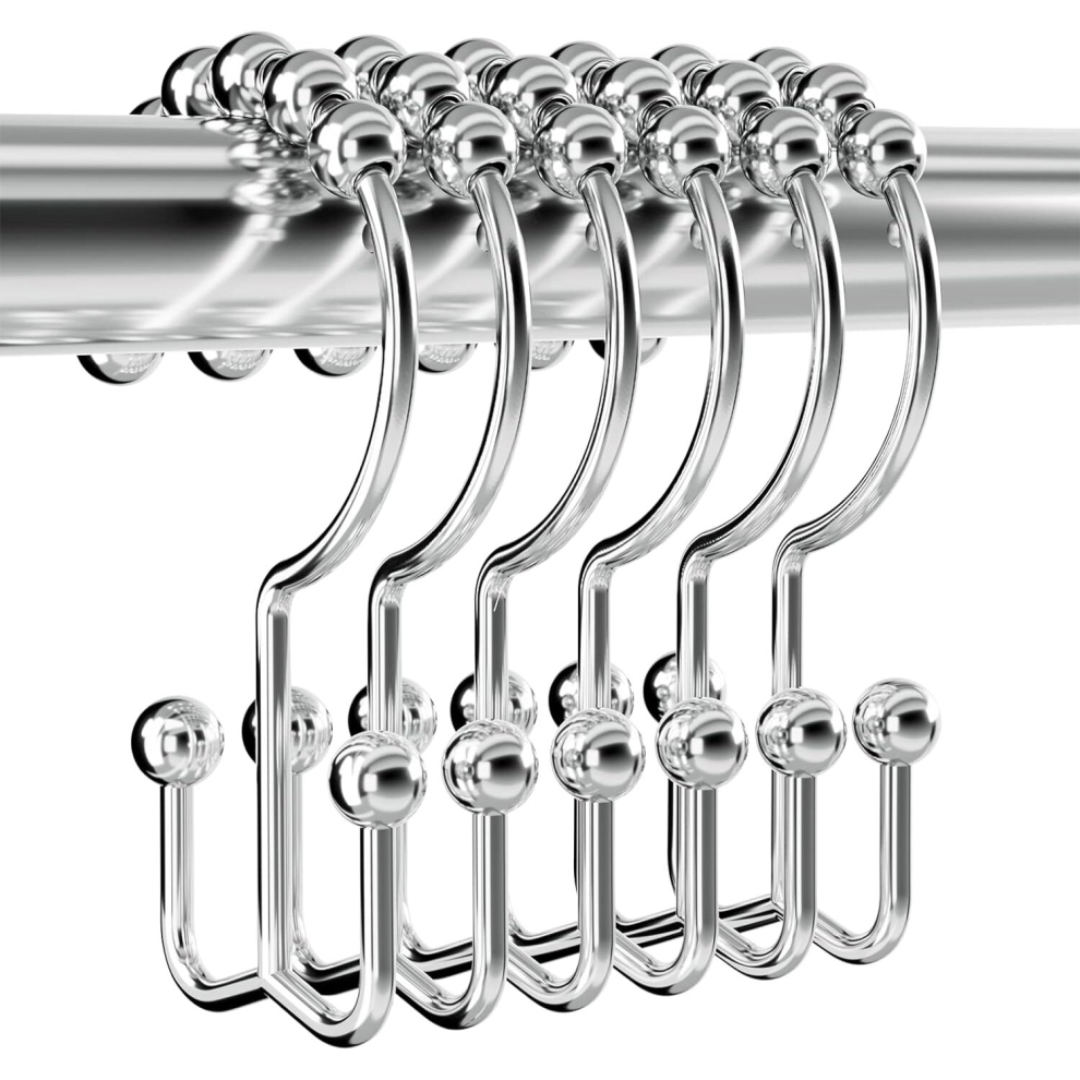 Sturdy Shower Curtain Hooks Rings Rust Proof Metal Double Sided Shower Hooks Rings for Bathroom Shower Curtain Rod Curtains, Set of 12 Hooks, Chrome