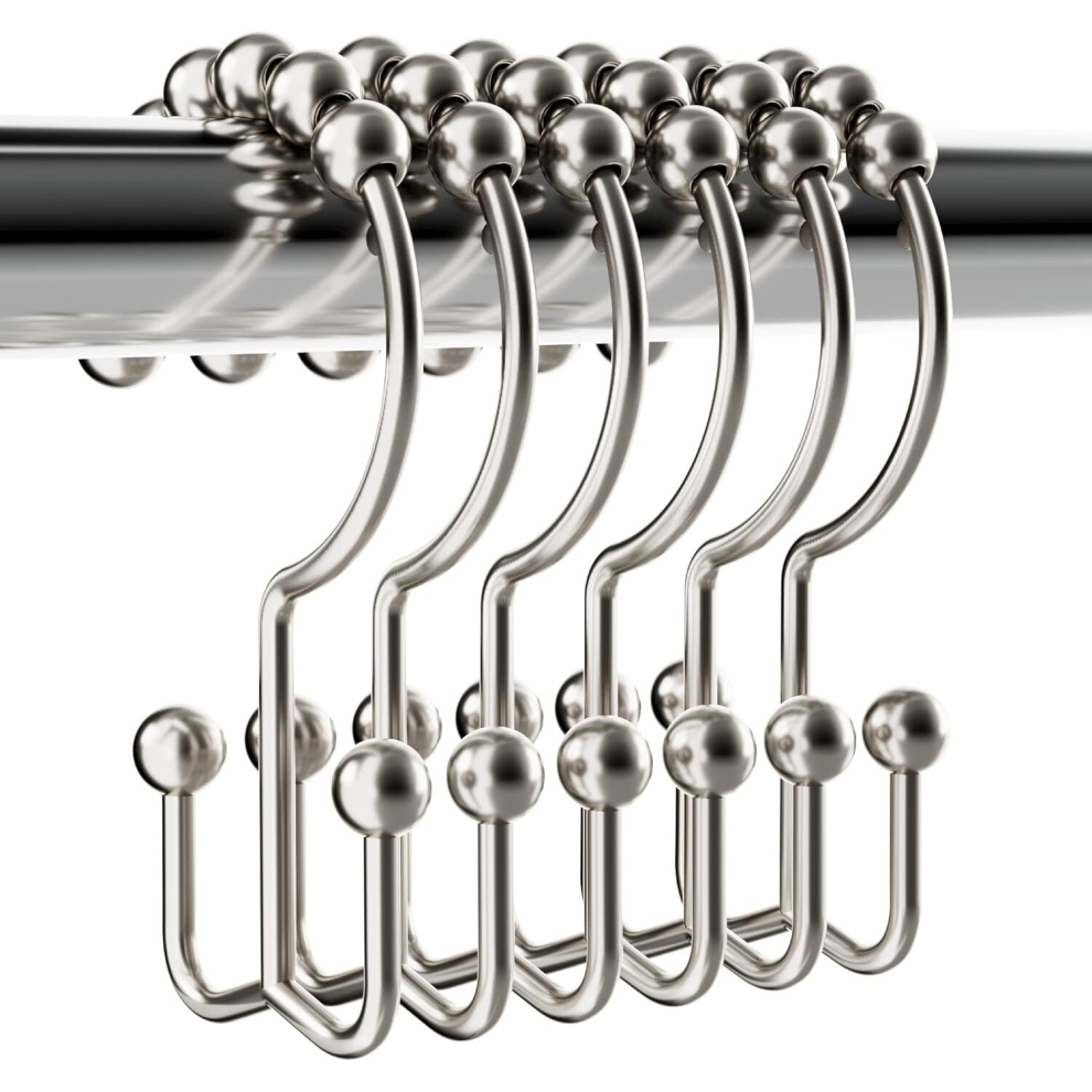 Sturdy Shower Curtain Hooks Rings Rust Proof Metal Double Sided Shower Hooks Rings for Bathroom Shower Curtain Rod Curtains, Set of 12 Hooks, Nickel