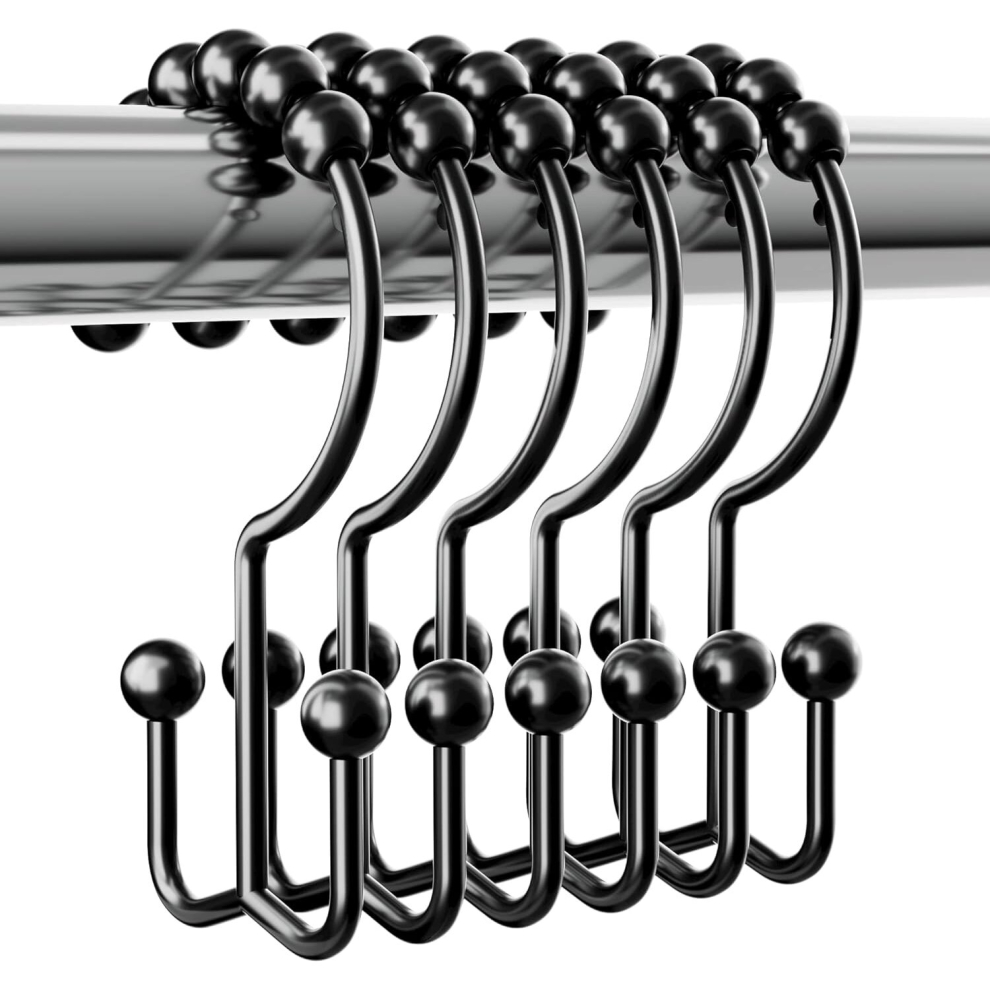 Sturdy Shower Curtain Hooks Rings Rust Proof Metal Double Sided Shower Hooks Rings for Bathroom Shower Curtain Rod Curtains, Set of 12 Hooks, Black
