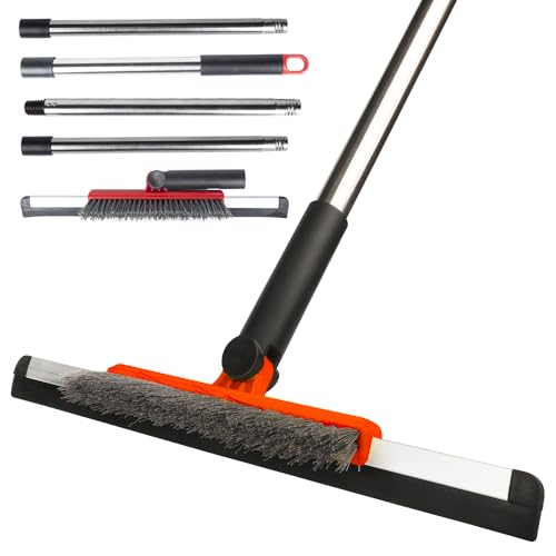 Floor Squeegee Broom Scrubbing Brush, 2-in-1 Scrape and Brush with Long Handle, Stiff Bristle Shower Scrubber for Cleaning Garage,Kitchen,Tile and Wall