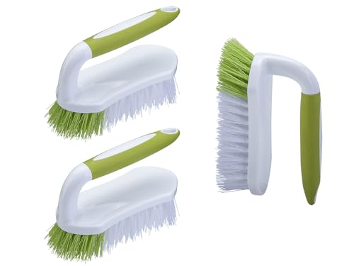 Scrub Brush Set of 3pcs - Cleaning Shower Scrubber with Ergonomic Handle and Durable Bristles - Grout Cleaner Brush - Scrub Brushes for Cleaning Bathroom, Shower, Tile, Kitchen, Floor, Bathtub, Floor