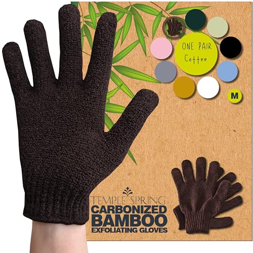 Temple Spring Exfoliating Glove, Carbonized Rayon Bamboo Body Scrubber, Loofah Exfoliating Mitt, Shower Scrubber Wash Cloth, Body Exfoliator Scrub, Loofa Shower Gloves Bath Sponge - Coffee