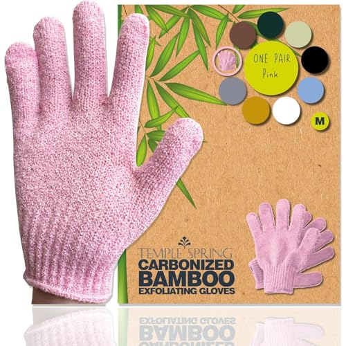 Temple Spring Exfoliating Glove, Carbonized Rayon Bamboo Body Scrubber, Loofah Exfoliating Mitt, Shower Scrubber Wash Cloth, Body Exfoliator Scrub, Loofa Shower Gloves Bath Sponge - Black