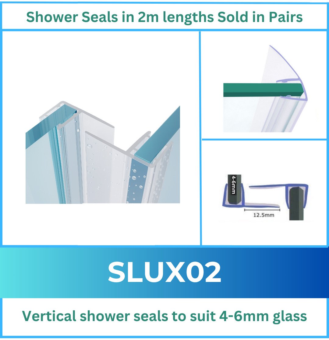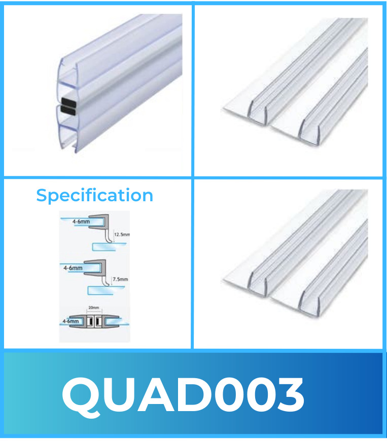Shower Outlet F Shape Sliding Shower Door Seal Strips 12mm Vertical Fins 2M Pair