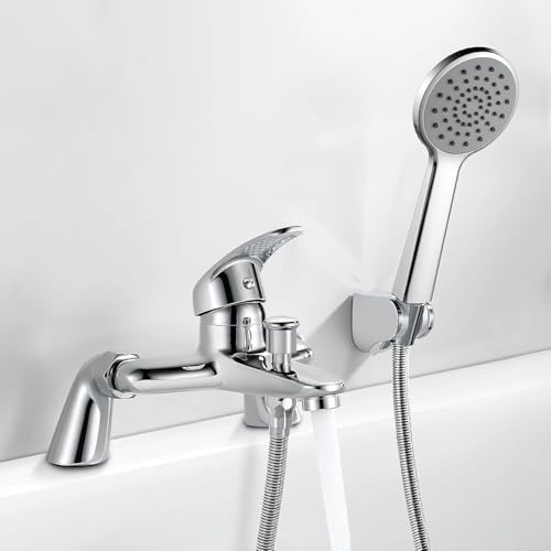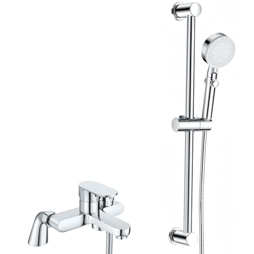 Rehomthy Bath Shower Mixer Tap with Shower Head and Hose, Modern Round Monobloc Single Bath Taps with Shower Attachment, Chrome, 180mm Centres