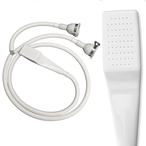 Blue Canyon Lunar Double Tap Shower Spray, Premium Bathroom Accessory, Push-on Shower Attachment for Round & Oval Taps, ~1.2 Metres White Hose (White)