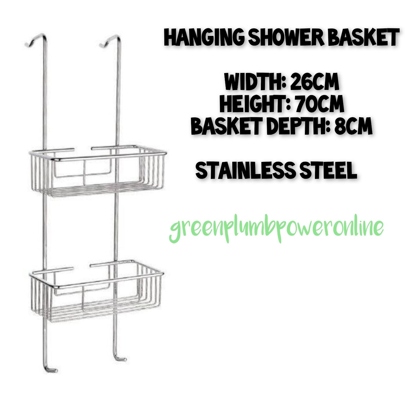 Chrome Plated Steel 2 Tier Hanging Shower Caddy Rack Tidy Organiser Bathroom