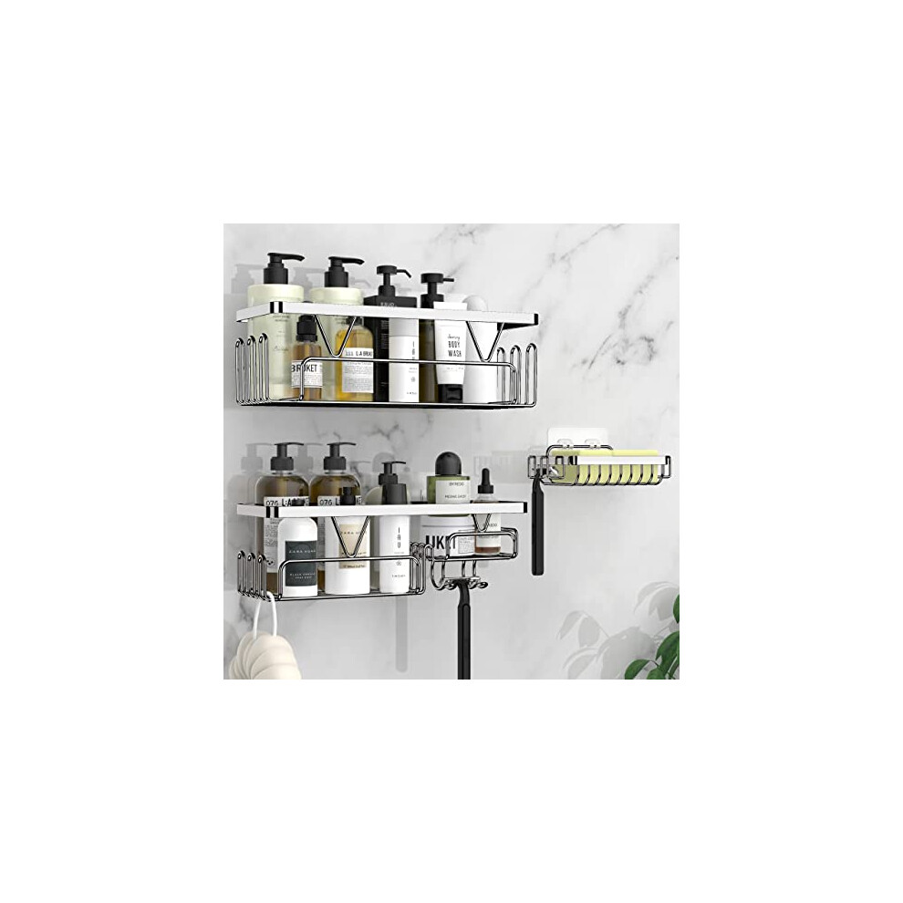 Hoomtaook Shower Caddy No Drilling 2 Packs, Shower Shelf Bathroom Shelf Shower Tidy for Shampoo, Shower Rack Organiser Holder with 2 Hooks and Shower