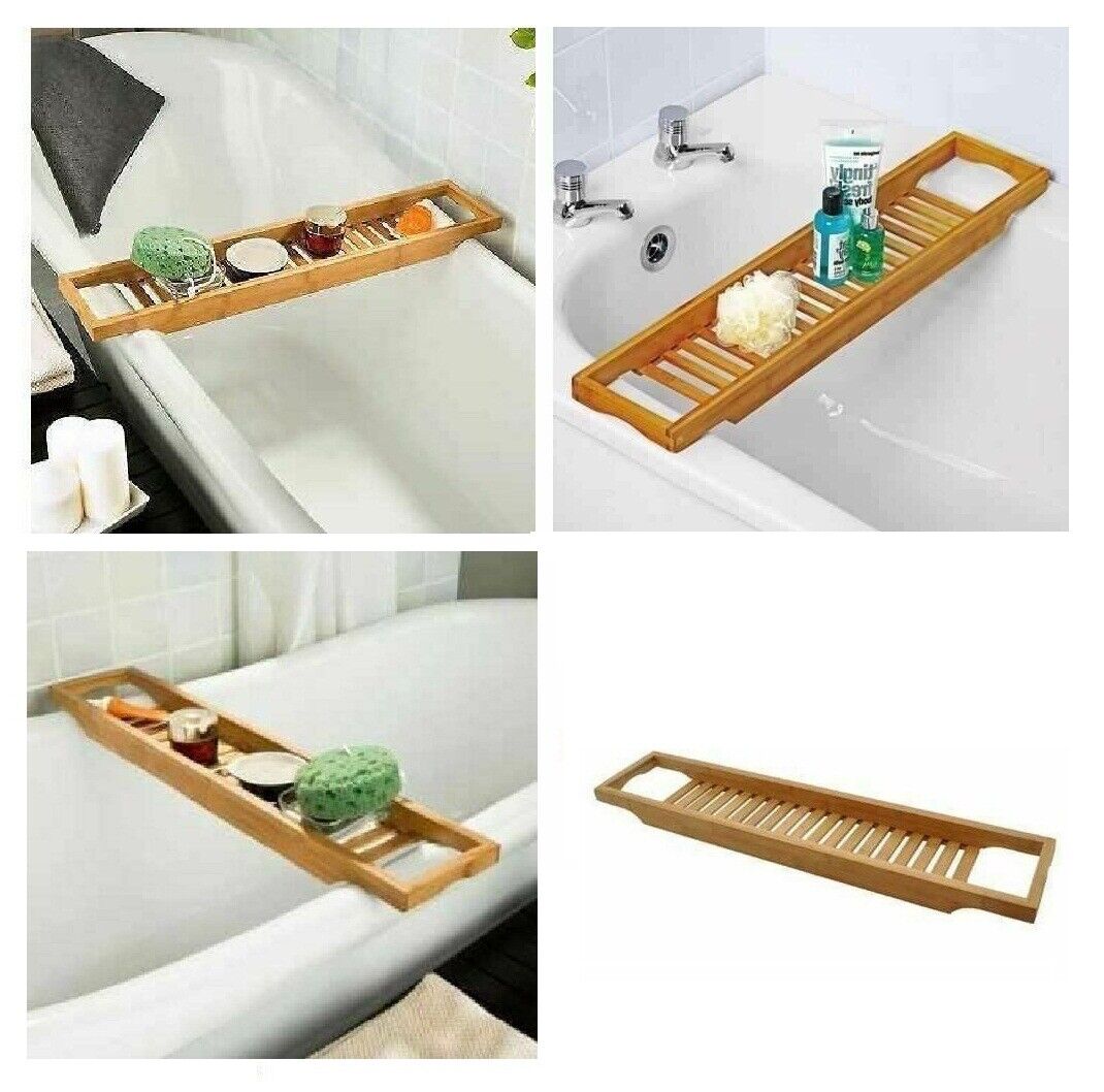 New Bamboo Wood Over Bath Tub Rack Bathroom Storage Stand Tray Tidy Shower Caddy