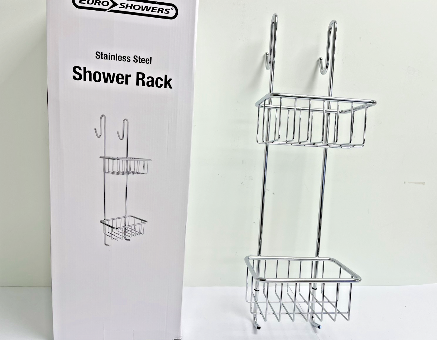 Large 2 tier Shower Rack Basket Tidy Stainless Steel Hook Over Hanging