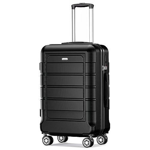 SHOWKOO Suitcase Medium 24-Inch Expandable PC+ABS Hard Shell Lightweight Durable Trolley Travel Carry-On Luggage with Double Spinner Wheels TSA Lock, 24" Black