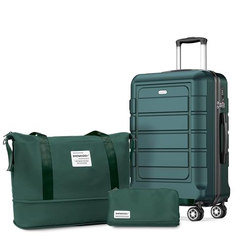 SHOWKOO Suitcase Large 28-Inch Set Expandable PC+ABS Hard Shell Travel Luggage Lightweight Durable Large Capacity with Travel Duffels Bag + Toiletry Bag -Green