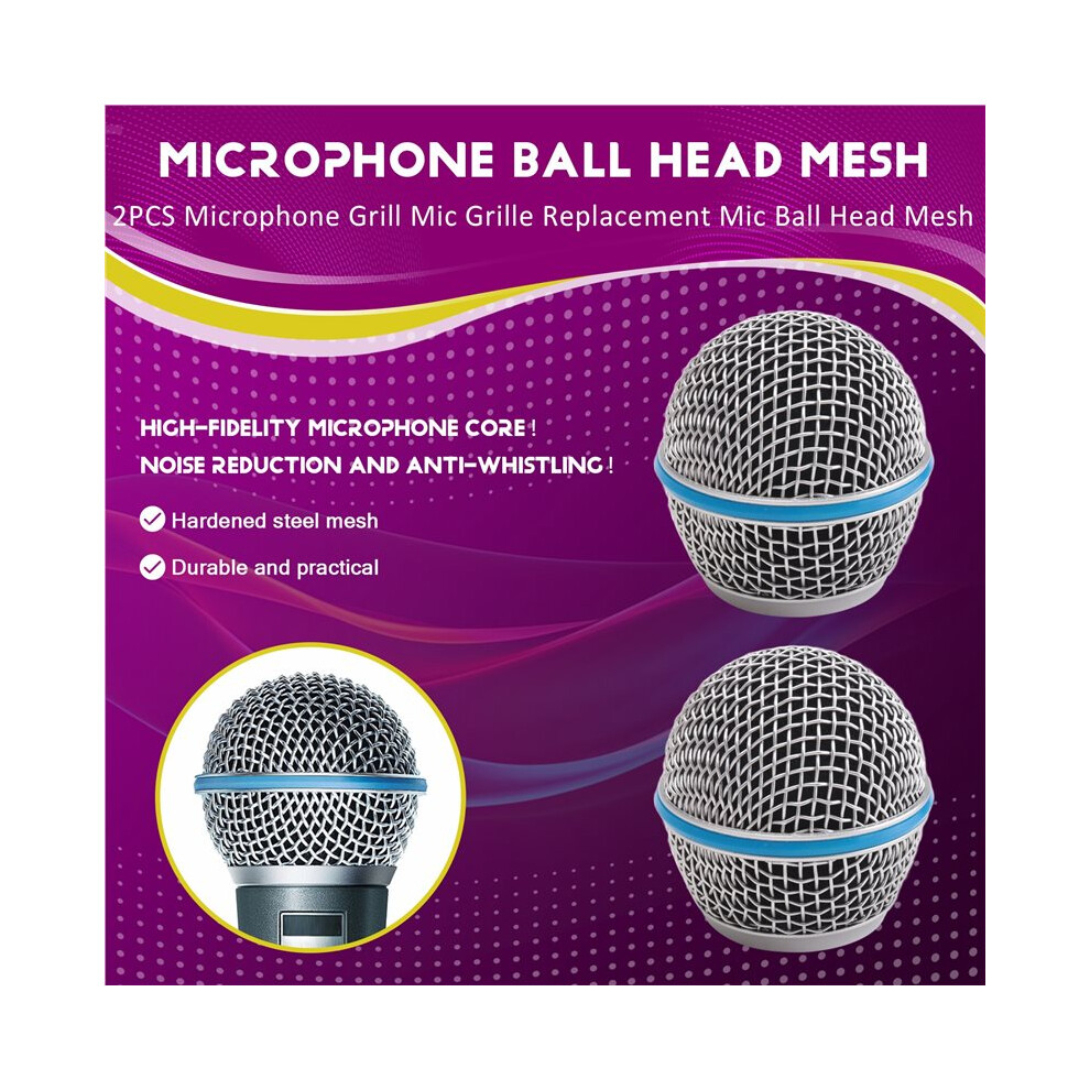 2PCS Microphone Grill Mic Grille Replacement Mic Ball Head Mesh for Shure Beta58A SM58 Pgx24 Slx24