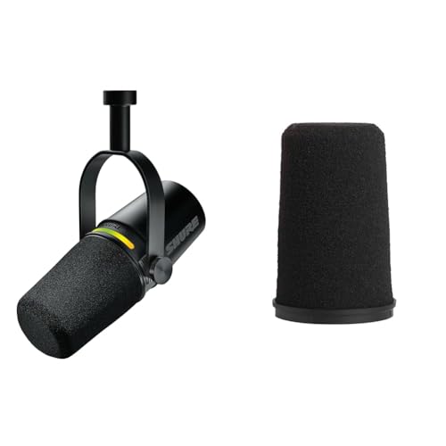 Shure MV7+ Podcast Microphone. Enhanced Audio, LED Touch Panel, USB-C & XLR Outputs & RK345 Black Foam Replacement Windscreen for SM7A and SM7B Microphones - Reduces Unwanted Breath and Wind Noise