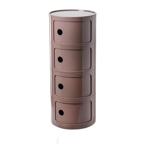 3-Tier Round Nightstand with Drawer, White Plastic Side Table with Storage, Multifunctional End for Bedroom Living Room Bathroom(Dirty pink,4 Tier)