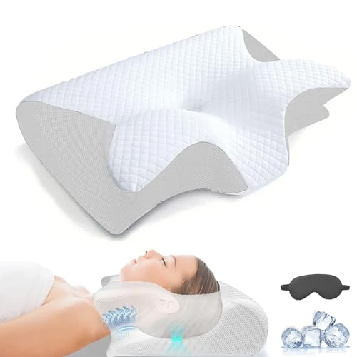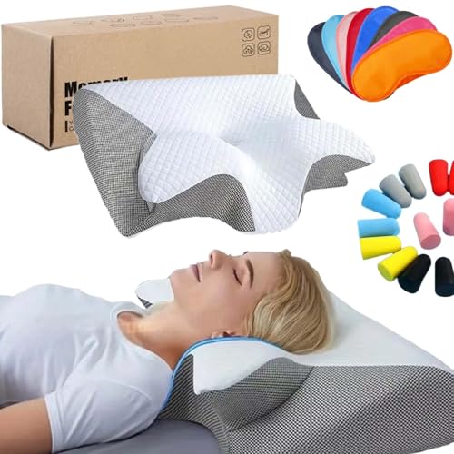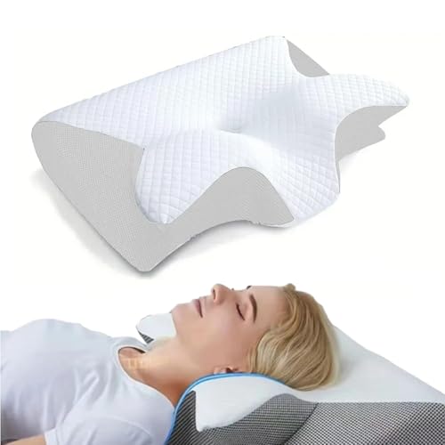 MISSCOZY Ergonomic Pillow for Side Sleeper-Orthopedic Cervical Pillow for Neck Pain, Anti Snore Sleep Apnea, Butterfly Memory Foam Neck Support Side/Back/Stomach Sleepers with Washable Cover (Grey)