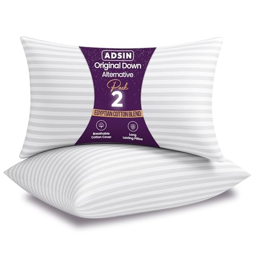 adsin Stripe Bed Pillows, Bounce Back Premium Polyester Hypoallergenic And Dust Mite Resistant Hotel Luxury Sleep Pillows, for Back and Side Sleepers Pillow (Extra Firm, Pack of 2)