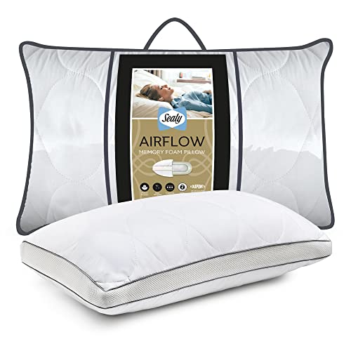 Sealy Airflow Memory Foam Pillow - Ventilated Memory Foam Bed Pillow for Cool Sleep with Fibadown Fibres and Cotton Quilted Cover - Medium Firmness Ideal for Side and Back Sleepers, White