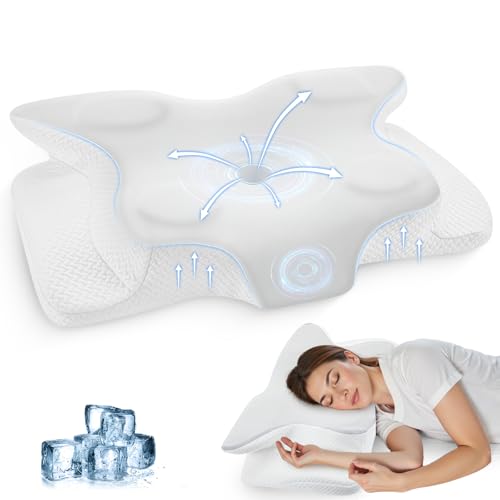 Tangstrad New Cervical Memory Foam Pillow for Sleep Apnea and Neck Pain Relief, Ergonomic Side Sleeper Pillow, Butterfly Neck Support for Back Sleepers, Orthopedic Design with Removable Cover (White)
