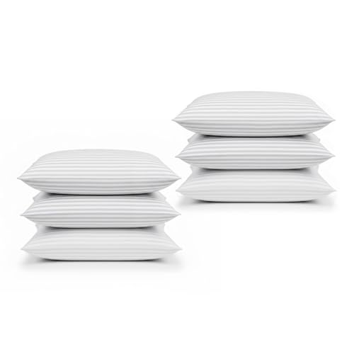 Comfy Nights Pillow 6 Pack Hotel Quality Stripe Bed Pillows Hypoallergenic & Anti Dust Mite Resistant Firm Support Side Sleeper Bounce Back Pillow (Pack of 6)