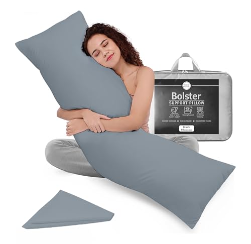 Rohi 5ft Full Body Pillow with Grey Pillowcase–Hollowfibre Filling – Orthopaedic 19"x 60" King Bed Size Long Pillow – Bolster Pillow for Maternity, Back & Neck Support –Side Sleeper pillow