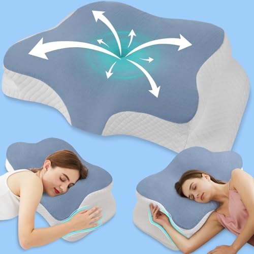 Cooling Side Sleeper Pillow for Neck and Shoulder Pain Relief, Adjustable Shredded Memory Foam Neck Pillows Sleeping, Cervical Support Bed Pillows, Queen Size Bed Pillows for Sleeping