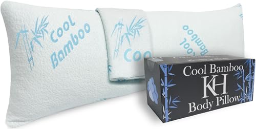 Cooling Bamboo Full Body Pillow for Sleeping, Shredded Memory Foam, Long Pregnancy Pillows for Adults, Washable & Removable Zippered Breathable Hypoallergenic Bamboo Cover Firm Side Sleeper Hug Pillow