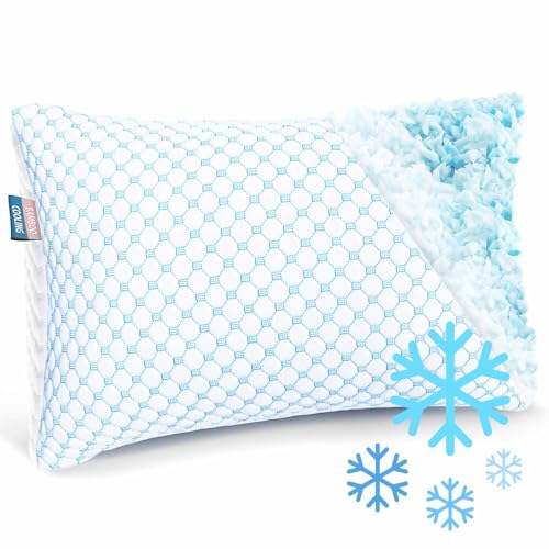 WISHSMILE ZASTION Cooling Shredded Memory Foam Pillows for Sleeping Cool Cold Pillow Queen Size Set of 2 with Zipper, Adjustable Firmness to Hot, Side, Back and Stomach Sleepers, 2 Pack, 20x30