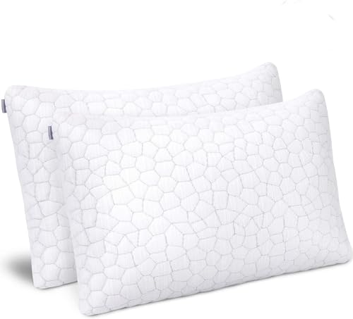 Shredded Memory Foam Pillow for Sleeping 2 Pack Cooling Bamboo Pillow with Adjustable Loft Hypoallergenic Bed Pillows for Side and Back Sleepers Washable Removable Derived Rayon Cover (2-Pack)
