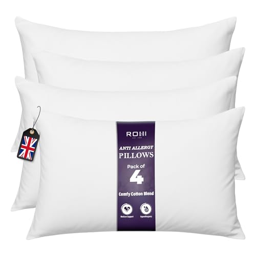 Rohi Medium Support Bed Pillows 4 Pack – Anti Allergy & Breathable Cotton Blend Sleeping Pillow – Plain Pillows for Side Sleepers & Back Sleepers – Standard Size 45 x 70 cm