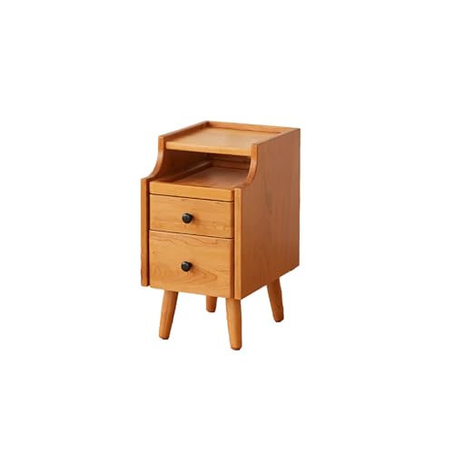 Fslvmin Narrow Nightstand, Solid Wood Bedside Table with 2 Drawers And Open Sliding Shelf, Mid Century Modern Storage Cabinet Sofa End Side Table for Bedroom, Small Spaces(30cm/12, Cherry Wood B)