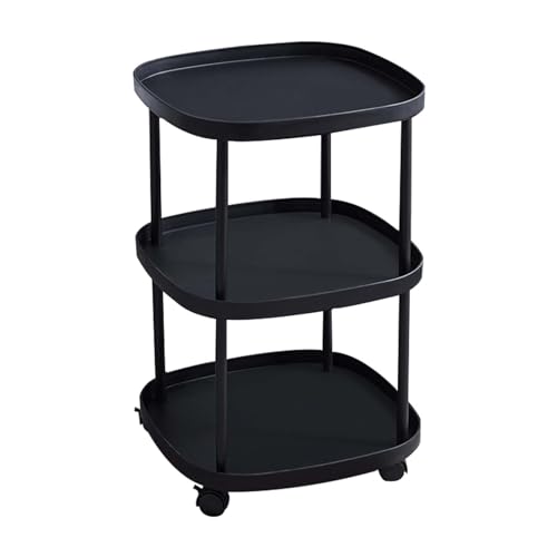 Removable Side Table, Sofa Side Table, Three Shelves with Wheels for Sofa, Bedroom, Living Room, Office and Small Spaces (Black,B)
