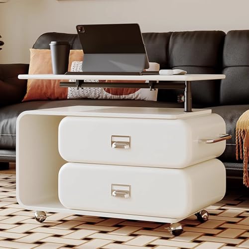Modern Coffee Table with Storage, Lift Top End Table with Wheels, 180° Rotating Tabletop and Drawers, Movable Center Tables Side Table Nightstand for Living Room, Bedroom,B