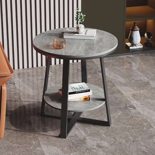 SPYQKHSH Modern 2-Tier Slate Coffee Table,round Side End Table With Storage and Metal Frame,Minimalist Center Tables for Living Room,Office(B,55x65cm)