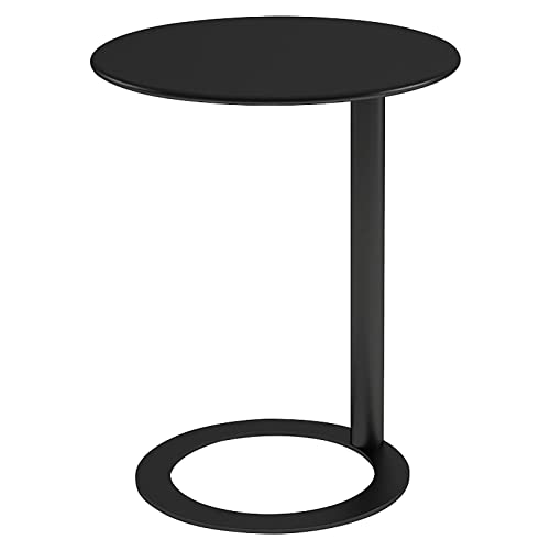 ZTHOME Modern Creative Coffee Table Metal Multifunction Small Round Side Table Practical Simple Table C-Shaped Side Table for Sofa Side(48x69cm, Black)