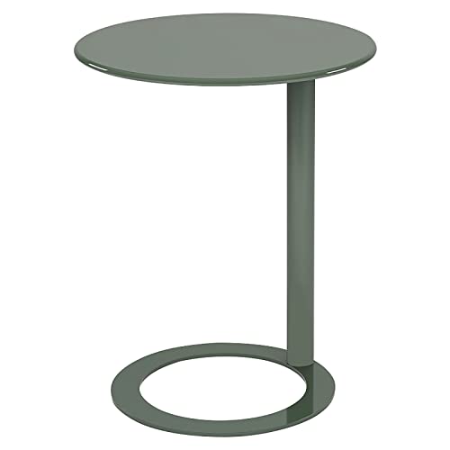 ZTHOME Modern Creative Coffee Table Metal Multifunction Small Round Side Table Practical Simple Table C-Shaped Side Table for Sofa Side(60x74cm, Dark Green)