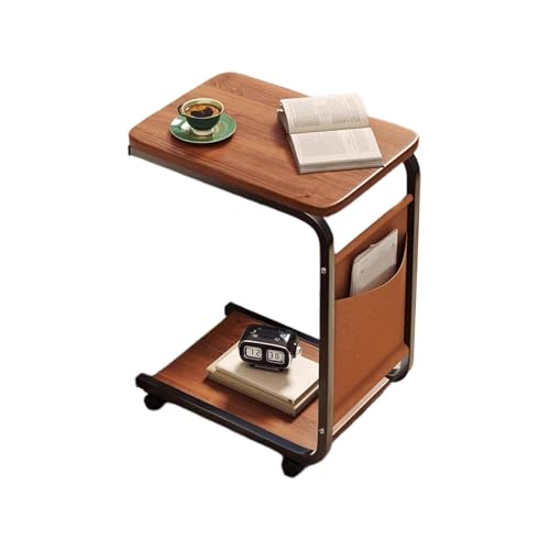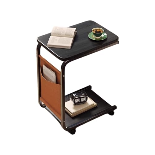 SPYQKHSH Solid Wood C Side Table for Couch Sofa and Bed,Laptop Work Desk,Bedside Table with Wheels,for Living Room Bedroom Office Balcony(B)
