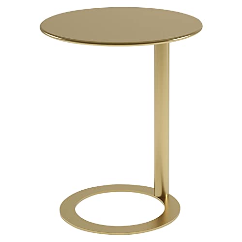 ZTHOME Modern Creative Coffee Table Metal Multifunction Small Round Side Table Practical Simple Table C-Shaped Side Table for Sofa Side(48x69cm, Gold)
