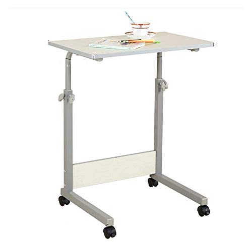 Tiiiopkvvv Adjustable Lap Table Mobile Laptop Computer Stand Bedside Table Portable Side Table for Bed Sofa Portable Computer Desk for Living Room Bedroom (White Simple Board)