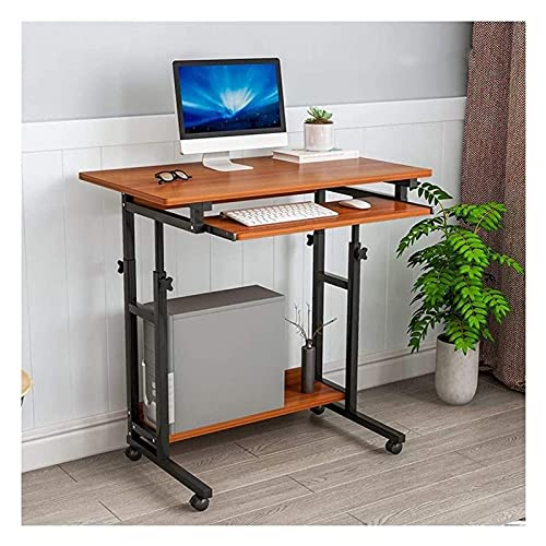 Estink Adjustable Laptop Stand with Wheels, 80.2 x 40 cm Computer Standing Desk, Portable Side Table for Bed Sofa, Dark Walnut