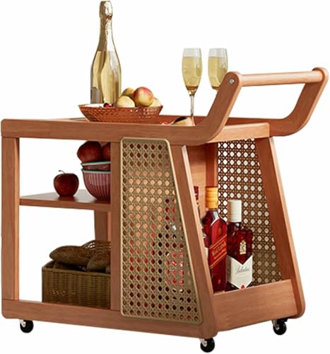 MNJVCFDS Wooden Sofa Side Table, Rattan Fence, 3-Tier Rolling Tea Cart with Wheels, Adjustable Dividers, Zoned Storage for Kitchen, Bedroom, Office